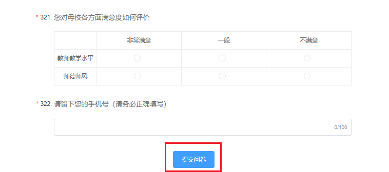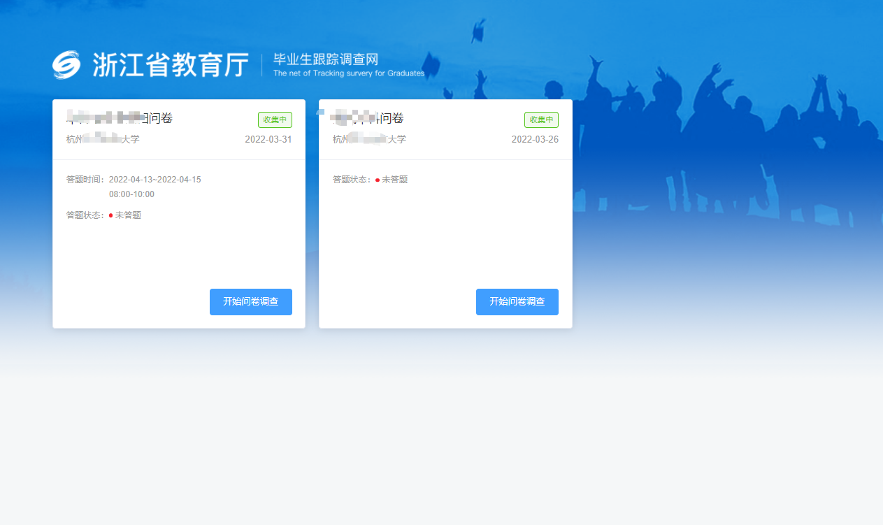进入网站首页后,点击毕业生调查入口进入入口页面。